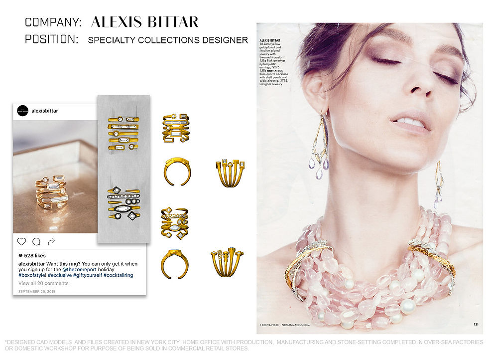 As Special Collections Designer, I worked worked closely with the Creative Director to create specialty items for store exclusives and assisted the Editorial Designer in creating press pieces. Other duties included working with Senior designers for the three house collections: Lucite, Elements, & Miss Havisham in designing retail collections.